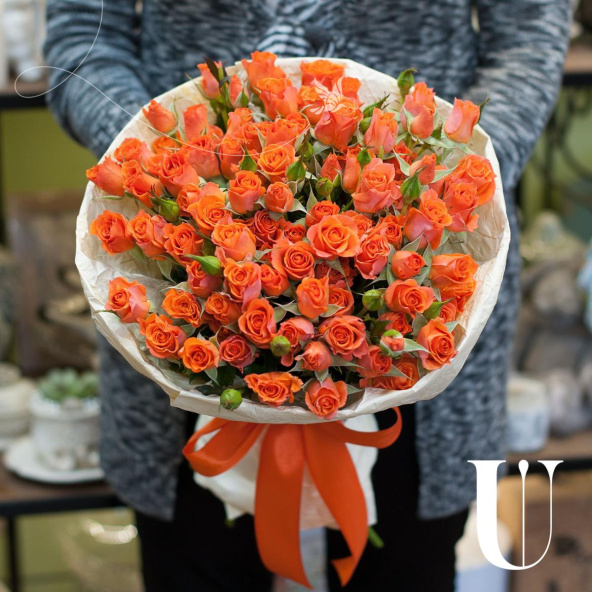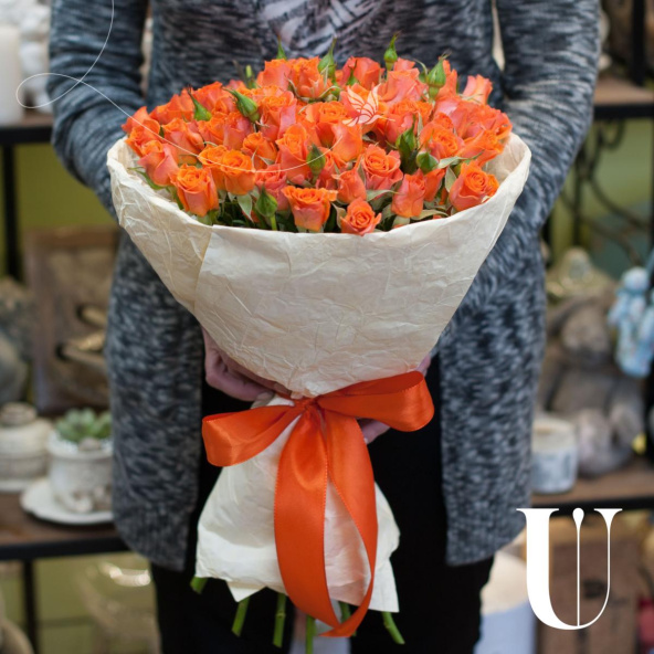 - Роза кустовая, оранжевая, 60 см. - 15 шт