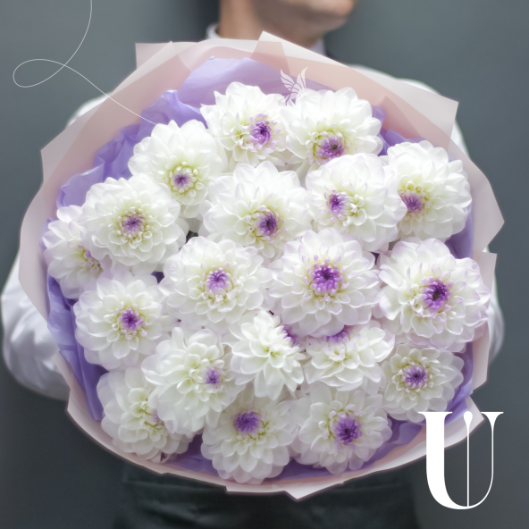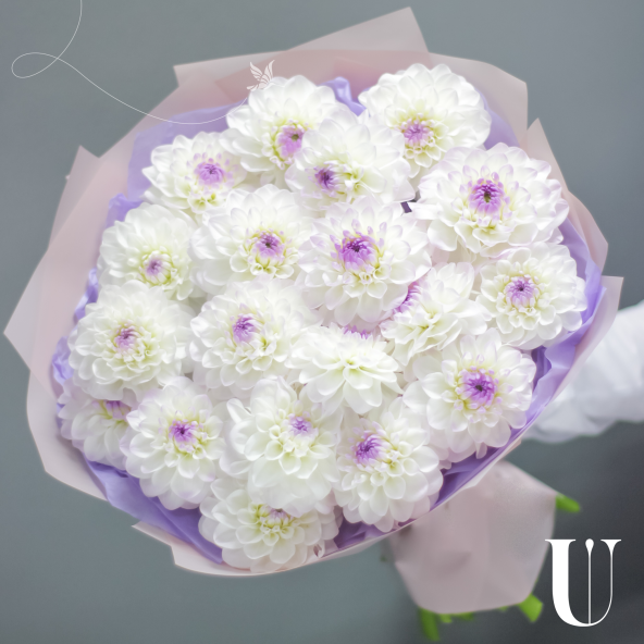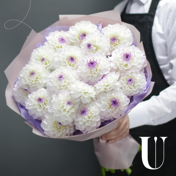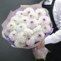 Монобукет из 15 белых одноголовых хризантем