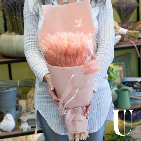 Букет из 15 розовых диантусов в дизайнерской упаковке