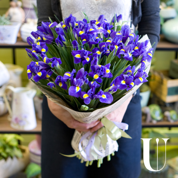 Роскошный букет из роз сорта Кантри Блюз в дизайнерской упаковке
