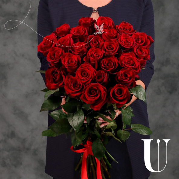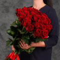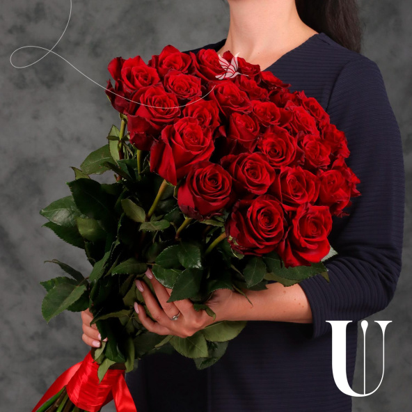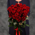 Монобукет из 101 розы Ред Наоми 60 см в черной упаковке