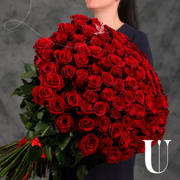 Гигантский, роскошный букет из 101 красной розы, 100 см