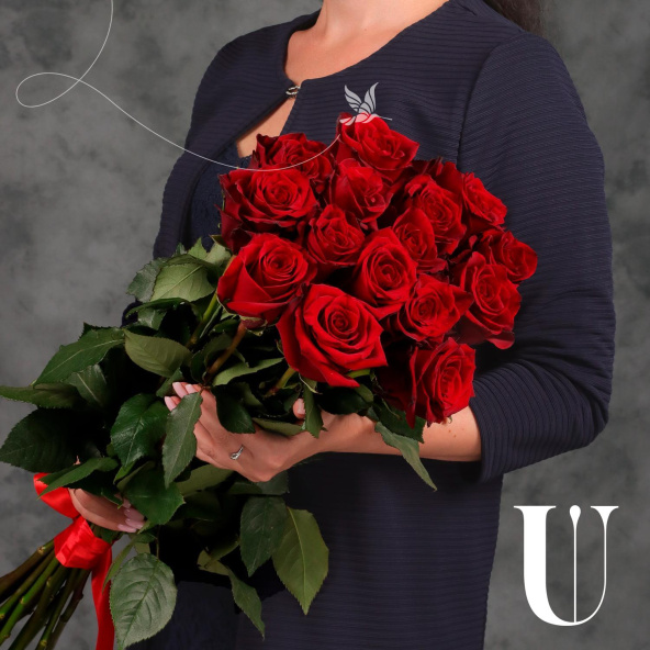 Букет из 15 красных Эквадорских роз 100 см