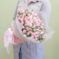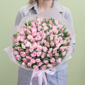 Монобукет из розовых и нежных кустовых роз в упаковке
