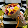 Монобукет из кустовых роз микс в крафтовой упаковке