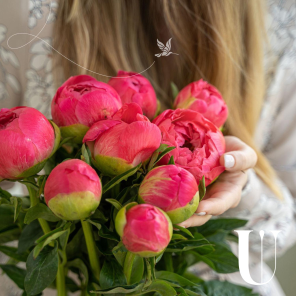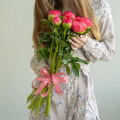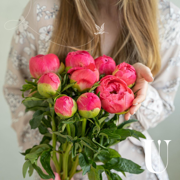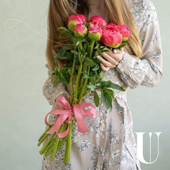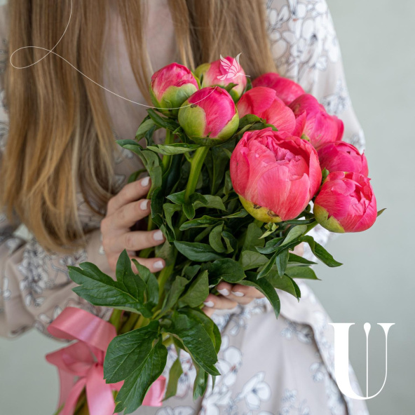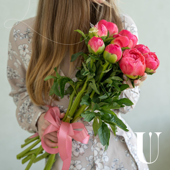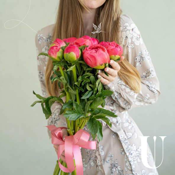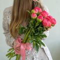 Монобукет из 9 розовых пионов сорта Сара Бернар