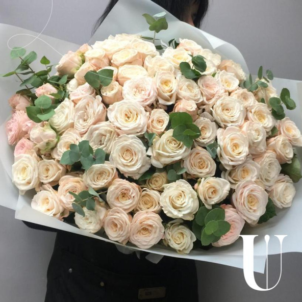 - Роза кустовая пионовидная, Бомбастик, кремовая, 50 см. - 39 шт