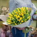 Монобукет из желтых тюльпанов "Золотистый" - это не просто букет, это произведение искусства, которое будет радовать получателя своей красотой и свежестью.