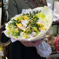 Монобукет из микса хризантем сантини в упаковке