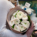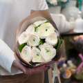 Монобукет из белых кустовых хризантем в дизайнерской упаковке