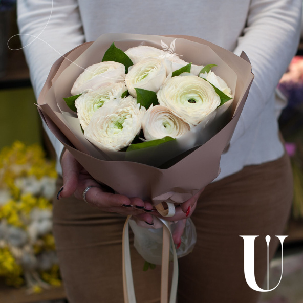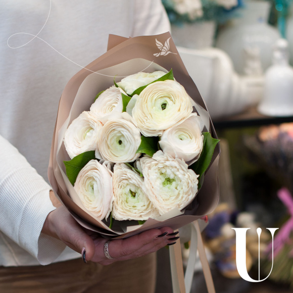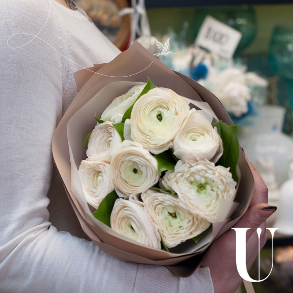 Букет из 9 розовых ранункулюсов в упаковке