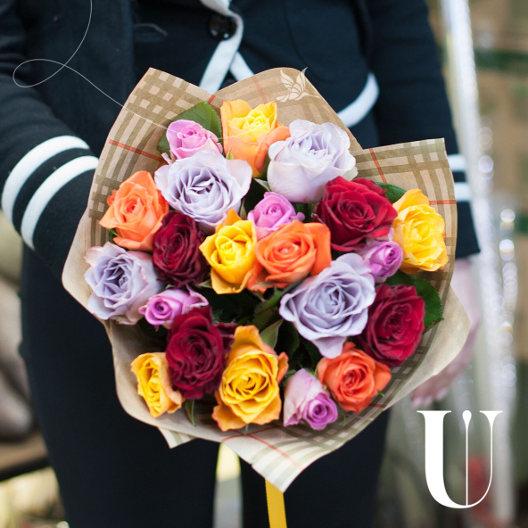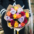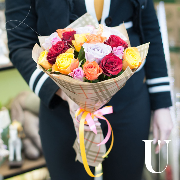 Монобукет из микса 11 роз Кения в матовой упаковке