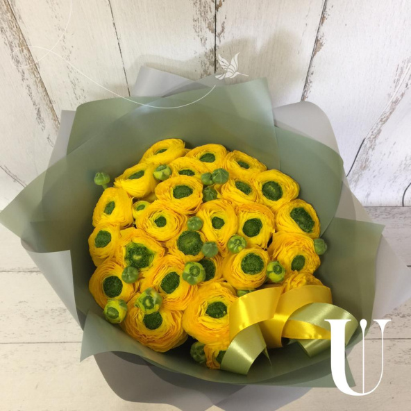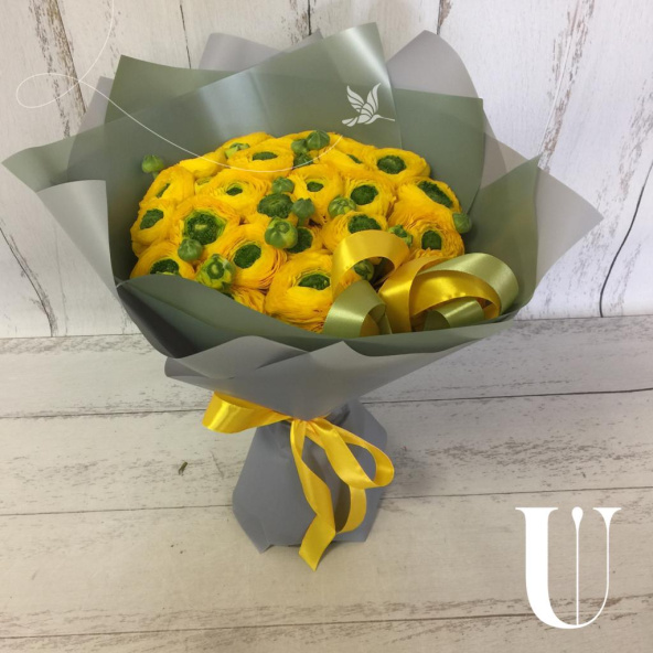 Мы перевяжем букет атласными лентами, упакуем в красивую бумагу и приложим карточку от вашего имени