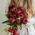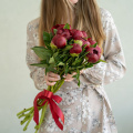 Монобукет из 9 коралловых пионов сорта Корал Шарм
