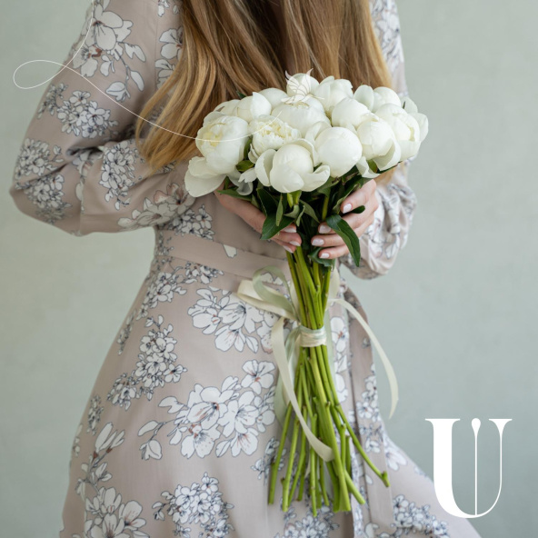 Монобукет из 15 розовых пионов сорта Сара Бернар