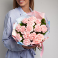 Букет из 11 розовых кустовых роз в дизайнерской бумаге