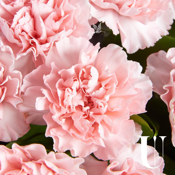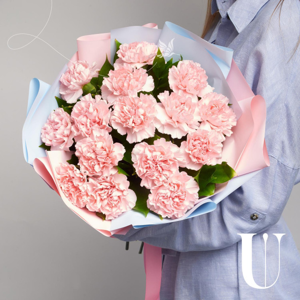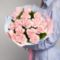 Монобукет из 15 кремовых диантусов в дизайнерской упаковке