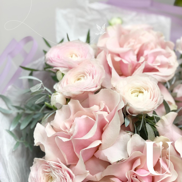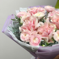 Монобукет из 19 ранункулюсов Ханой в розовой упаковке