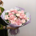 Монобукет из кустовых пионовидных роз Бомбастик в упаковке