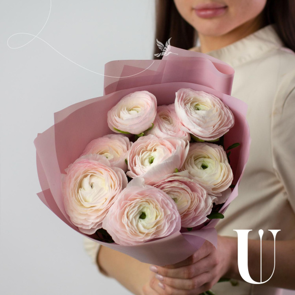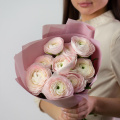 Монобукет из 9 розовых пионов в дизайнерской упаковке