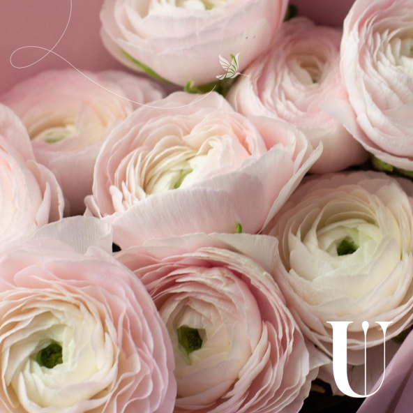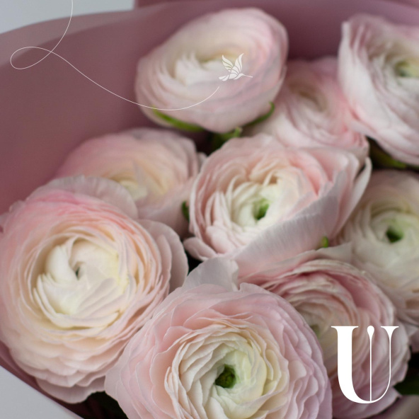Монобукет из 15 нежно-розовых пионов с розовой лентой
