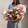 Монобукет из розовых кустовых пионовидных роз в упаковке