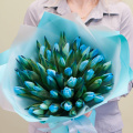 Монобукет из 49 сиреневых пионовидных тюльпанов в упаковке