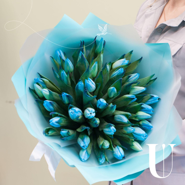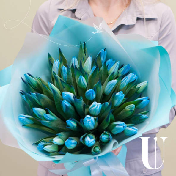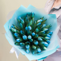 Монобукет из 49 розовых пионовидных тюльпанов в упаковке тиффани
