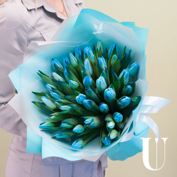Монобукет из 49 белых тюльпанов в дизайнерской упаковке