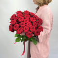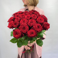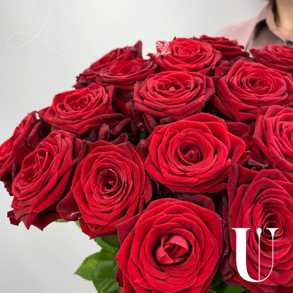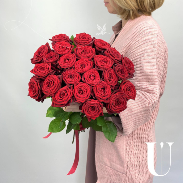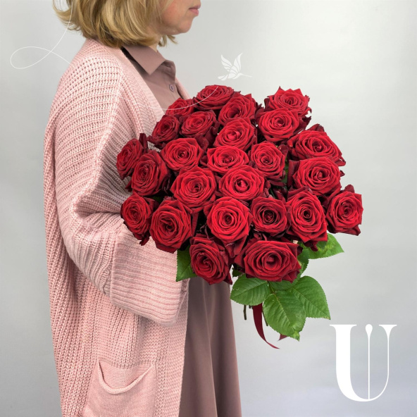 Монобукет из 25 красных роз Ред Наоми в черной упаковке