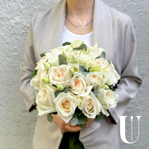 - Роза Вайт Охара, Эквадор, бело-розовая, пионовидная 50 см. - 17 шт