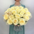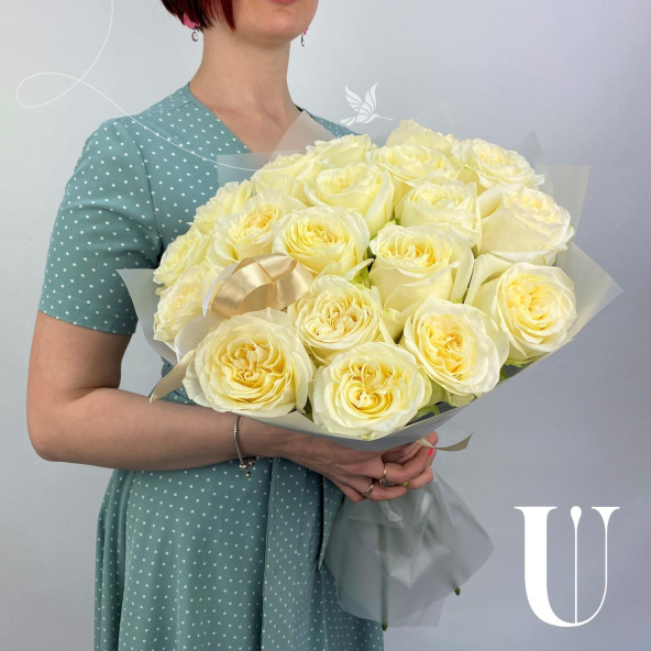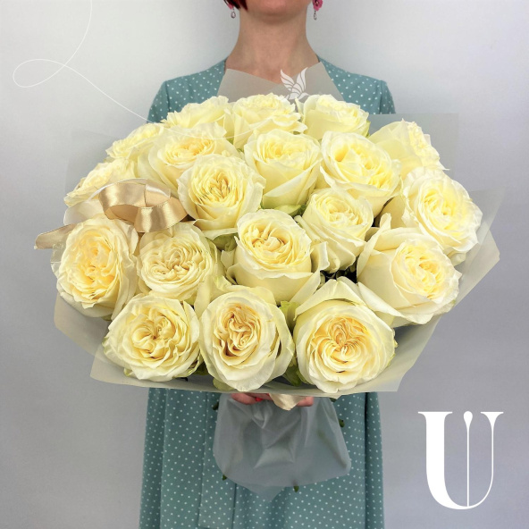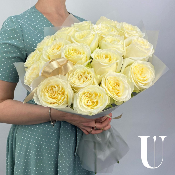 - Роза Кэндллайт Эквадор, бело-золотистая 60 см - 19 шт