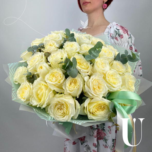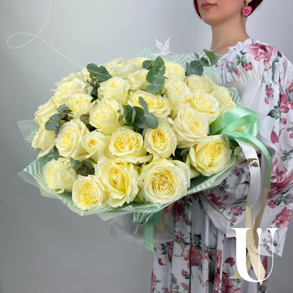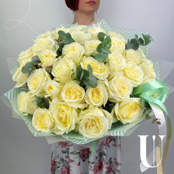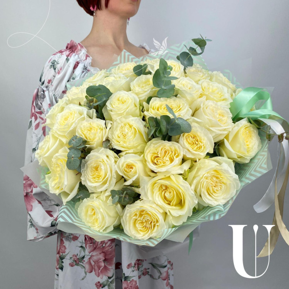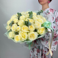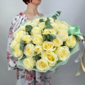 - Роза Кэндллайт Эквадор, бело-золотистая 60 см - 35 шт