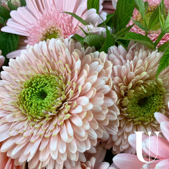 Букет из микса хризантем Сантини в упаковке