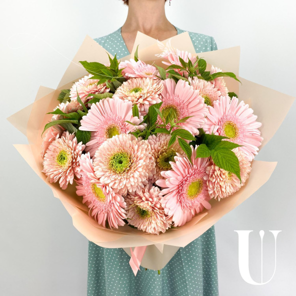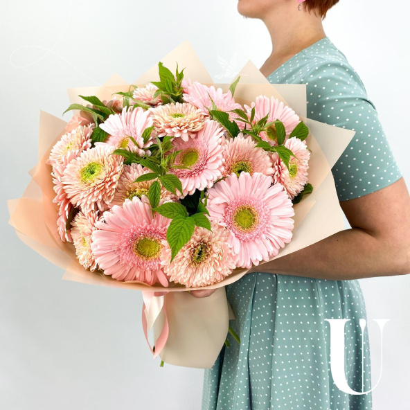 Гербера, розовая - 19 шт