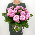 Монобукет из 11 роз Пинк Мондиаль в упаковке