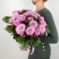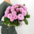 Монобукет из 15 вывернутых роз сорта Нина в матовой упаковке