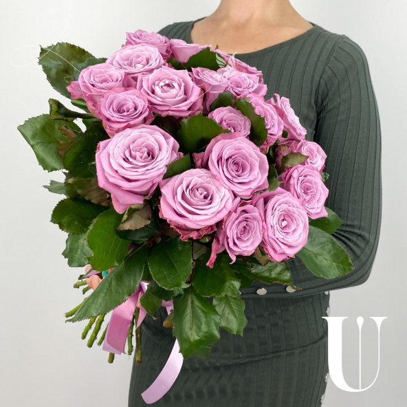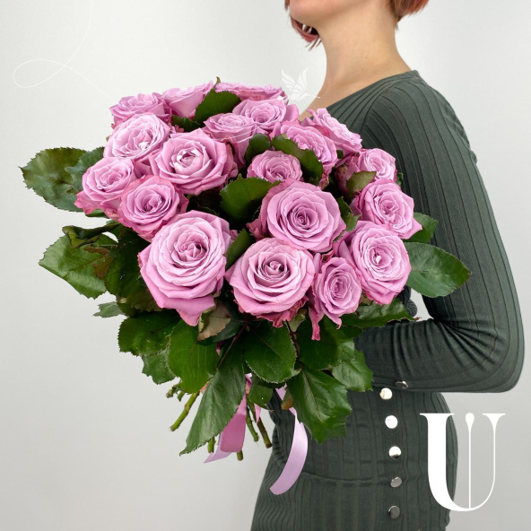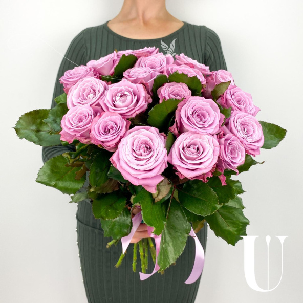 Роскошный букет из роз сорта Кантри Блюз в дизайнерской упаковке