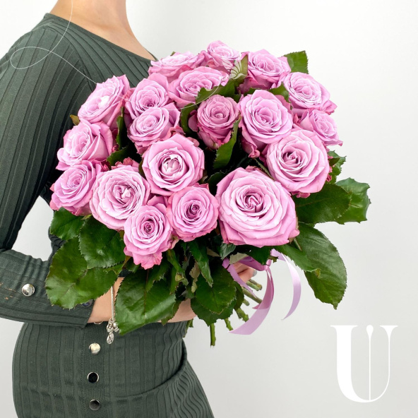 Яркий монобукет из 25 розовых роз сорта Аква