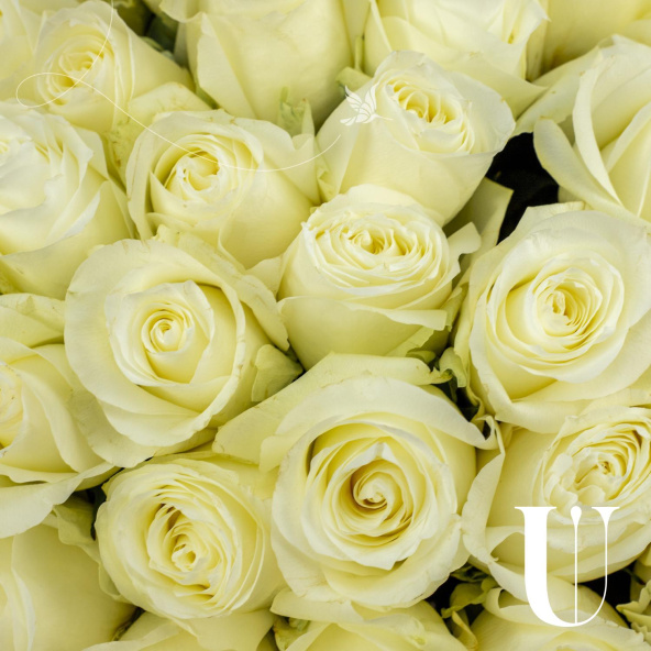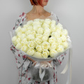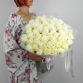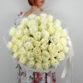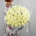 Большой букет из 51 белой розы сорта Аваланж 70 см