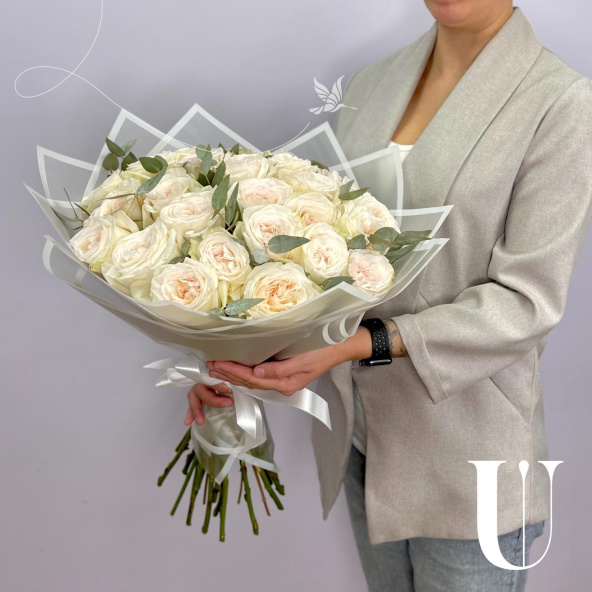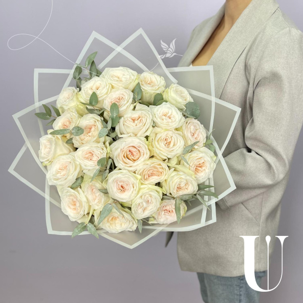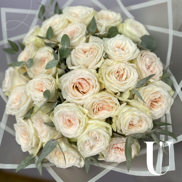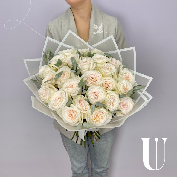 - Роза Вайт Охара, Эквадор, бело-розовая, пионовидная 50 см. - 25 шт