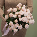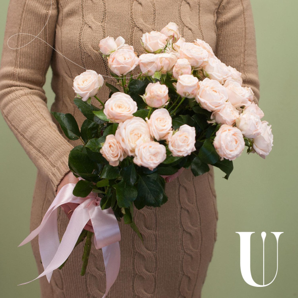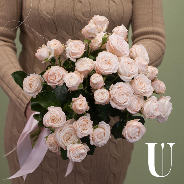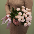 Нежные кустовые пионовидные розы в дизайнерской упаковке