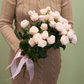 Монобукет из 11 роз Вайт Охара в розовой упаковке