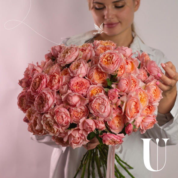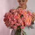 Большой букет из розовых кустовых роз Лав Лидия в крафтовой упаковке
