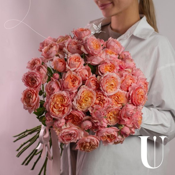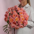 Монобукет из роз сорта Пич Аваланж в крафтовой упаковке