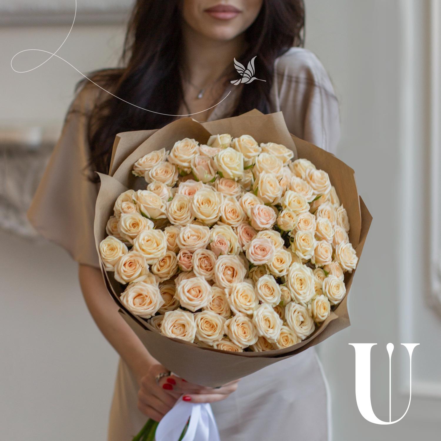 Монобукет из 51 кремовой розы 60 см в упаковке