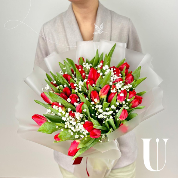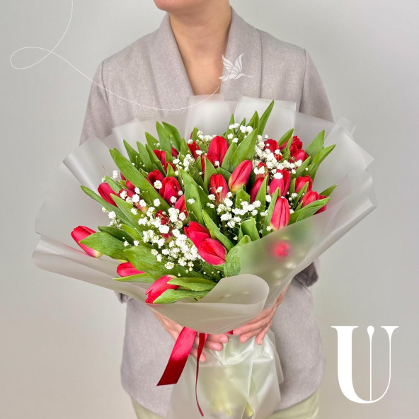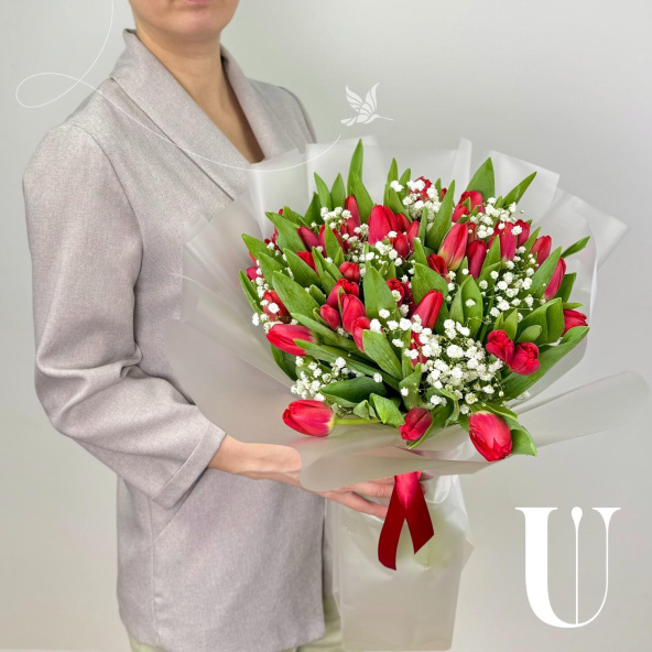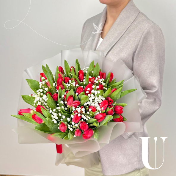 - Тюльпан, Россия, красный - 49 шт