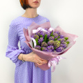 Букет из кустовых роз Лидия и роз Аваланж в дизайнерской упаковке