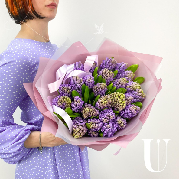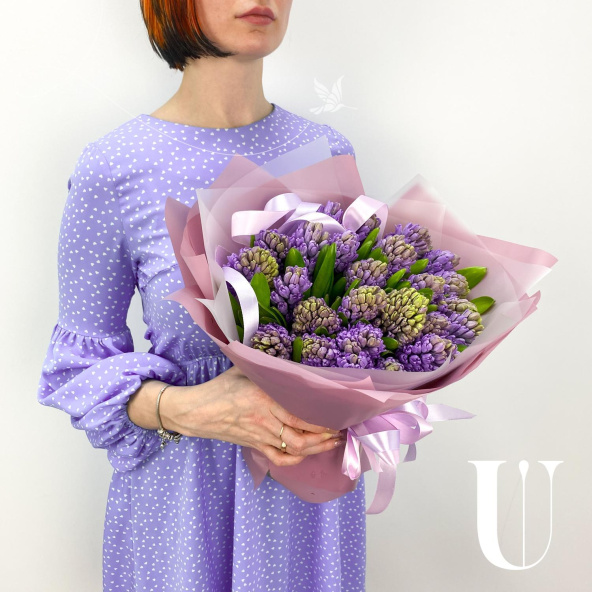 Букет из 9 фиолетовых маттиол в глянцевой пленке