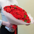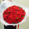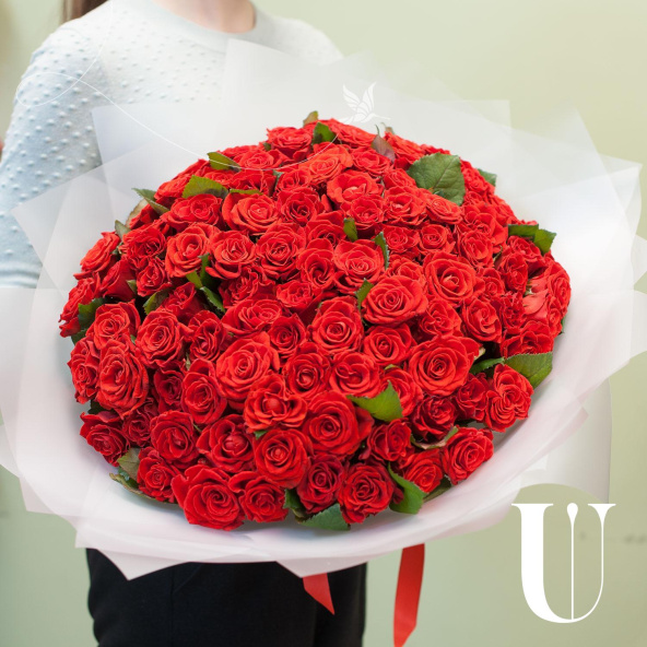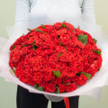 Большой букет из 101 розы сорта Мисс Пигги в крафтовой упаковке